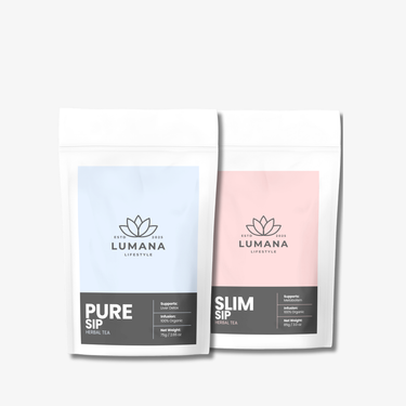 Kickstart your wellness journey with the Slim + Pure Duo — a dynamic pair of Lumana’s signature herbal blends. Crafted with 100% certified organic, ethically sourced ingredients, these teas are designed to be enjoyed morning and evening as part of your daily self-care routine.
